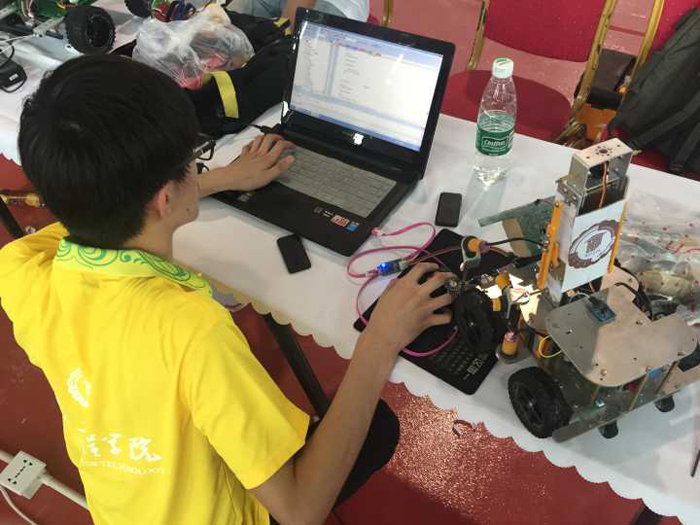 在教务处、工业中心创新学院的组织下,太阳集团参赛队参加了水下机器人、武术擂台赛、越野机器人、舞蹈机器人和空中机器人五个大项的比赛。自动化学院、工业中心的刘潇、倪银堂、陈贵江、徐彬同学在抢道越野机器人比赛中击败各路强手荣获全国冠军;自动化学院、工业中心的葛文韬、朱震霆、陈敏、胡晓强同学在擂台机器人仿人项目中击败全国130多支队伍,最终以第四名的成绩获得全国一等奖;电力工程学院、自动化学院、材料工程学院的孙翔、陈哲、李博、程亮同学在强队如云的无人机大战水果项目中勇夺全国一等奖;机械工程学院、自动化学院、工业中心的张建鹏、谈至、存颜丰、陆长文同学经过激烈角逐最终获得循线越野机器人比赛项目一等奖。