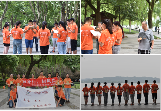 每天的实践活动都是从晨读开始的。借着朝阳的光辉,调查团全体成员步行至美丽的西子湖畔。“弟子规圣人训首孝悌次谨严”,在“柳浪闻莺”花园回响着我们的朗朗书声。晨诵中华三言韵文经典《弟子规》,用晨诵唤醒新的一天,大家徜徉在千年经典的文化韵律中,流连在碧波荡漾的西湖之畔,亲身感知文化经典的同时用自己的行动感染他人,一些晨练的民众也纷纷加入。闻者新,见者奇,驻足聆听的游人们纷纷表示:《弟子规》,教行孝,立规矩,回家一定要倡导孩子们读。