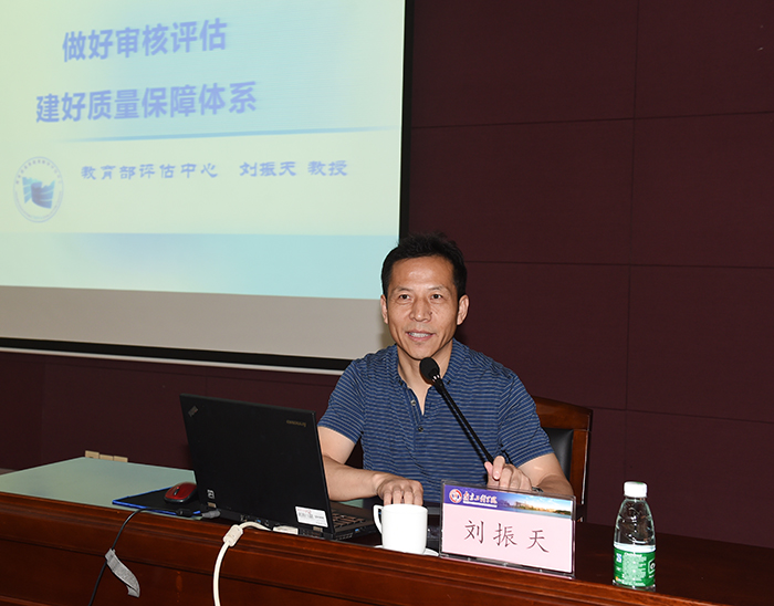 9月2日下午,教育部评估中心评估处处长刘振天作了题为《做好审核评估,建好质量保障体系》的报告。刘振天处长在对中国高等教育新形势的战略判断的基础上,对中国特色、世界水平高等教育质量保障体系进行了分析,对本科教学工作审核评估的指导思想、审核标准、评估理念、结论形式的创新之处进行了解读,同时也希望学校通过审核评估,抓住机遇,转变思想观念,强化办学合理定位,树立教学工作中心地位,坚持以质量为中心,突出内涵建设和特色发展。
