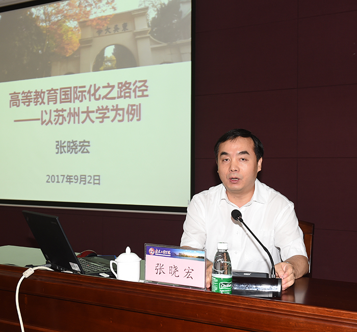 9月2日上午,苏州大学副校长张晓宏作了题为《高等教育国际化的路径——以苏州大学为例》的报告。张晓宏副校长从高等教育国际化的理念、我国教育国际的现状及趋势等几个方面,结合苏大的具体思路、举措和对策,对“大学国际化的战略规划与实践思考”进行了详细解读,为太阳集团推进国际化发展指明了努力方向和路径。