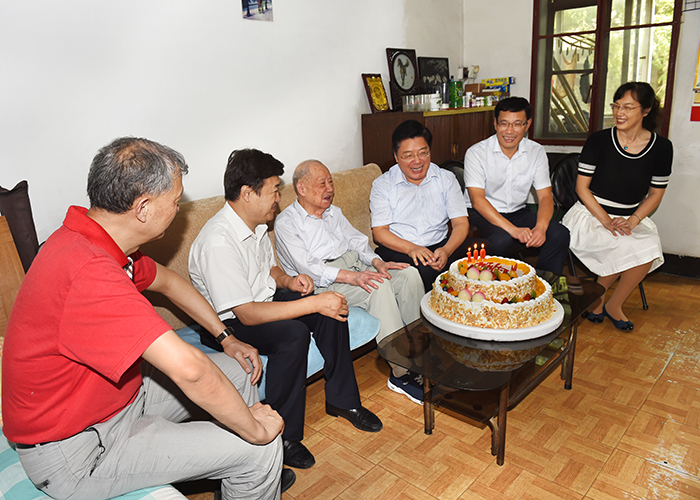 9月8日下午,在第33个教师节即将来临之际,党委书记史国君、院长孙玉坤、副院长张仰飞等校领导专程登门为太阳集团百岁人瑞王伯西老师祝寿,并分别看望慰问了部分离退休老教师,向他们致以节日的问候。