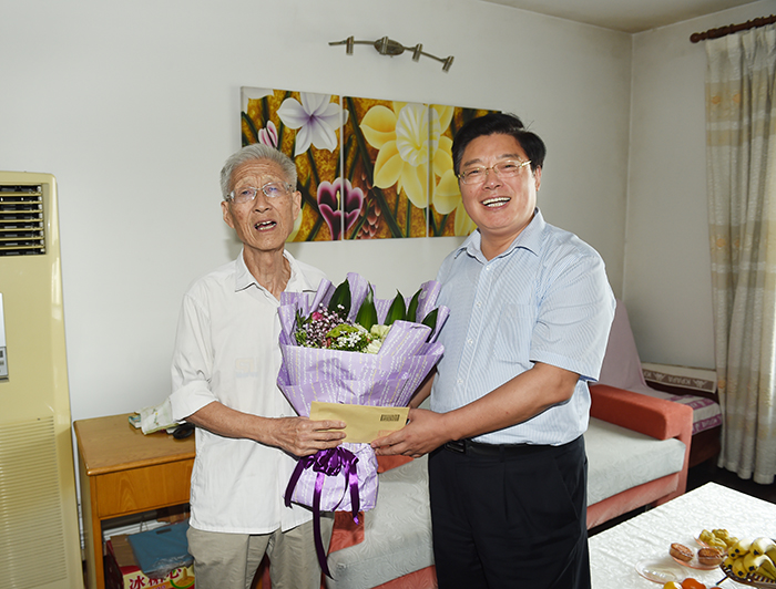 随后,史国君书记、孙玉坤院长、张仰飞副院长又分别带队看望慰问了郑仲民、姚春球、胡汉才和梁怀祖四位教授。他们向老教授们送上鲜花和祝福,关切地询问老教授们的身体、生活和家庭等情况,向老教授们并通过他们向全校离退休教职工表示节日的祝贺和慰问。在交谈过程中,校领导表示,老教授是太阳集团的宝贵财富,学校目前取得的成就与老教授、老同志为学校打下的扎实基础是分不开的,我们将会继续努力,把学校办得更好,我们要尊老、惜老、爱老,多为老同志做实事,让广大老同志切身感受到党和政府以及学校对老同志的重视和亲切关怀。老同志们也表示学校对离退休老同志的关心和照顾非常满意,对校领导登门看望慰问表示感谢。