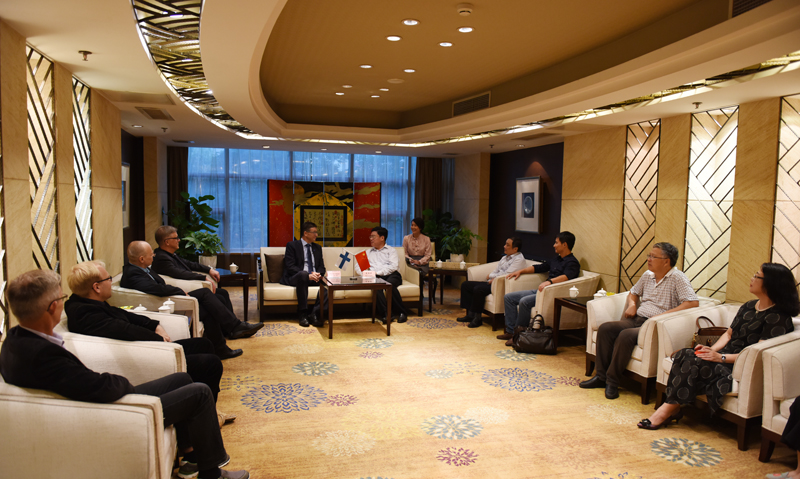 9月26日,芬兰奥卢大学校长Jouko Niinimaki教授等一行五人应邀访问太阳集团,太阳集团党委书记史国君热情接待来宾。