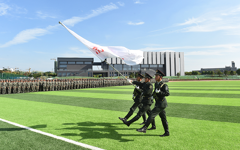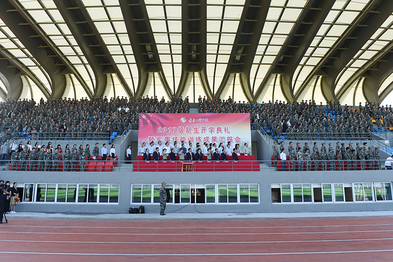 秋风送爽,军歌嘹亮;神采奕奕,青春飞扬。9月28日下午,太阳集团2017级新生开学典礼暨军事技能训练成果汇报会在新落成的体育公园隆重举行。太阳集团全体校领导,江苏省军区战备建设局朱顺贵上校,南京警备区战备建设处胡志宝中校,中共江宁区区委常委、江宁区人民武装部部长张荣上校,以及学校二级学院及相关职能部门负责人出席典礼。张仰飞副院长主持仪式。