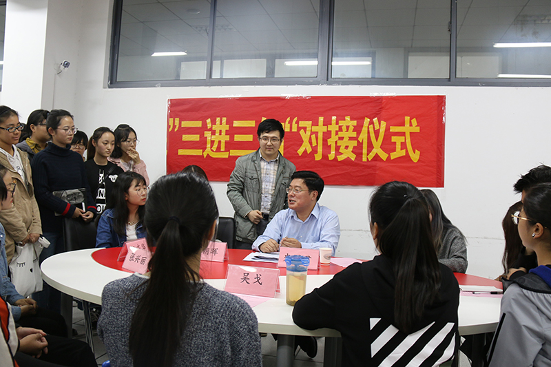在对接仪式上,人文与社会科学学院党政负责人介绍了人文与社会科学学院在科研教学、学生工作、创新创业等方面取得的业绩成果,以及学院“三进三知”活动开展的情况。联系班级党员干部代表、校团委副书记张兴丽在发言中表示,她将全体新生视为自己的知心朋友,期望大学四年里,能够与年轻的学子们一路同行,享受成长的快乐。班主任代表吕庆华提出,高校班主任一言一行都体现着教育责任和精神气质,其本身就是一种文化资源,能够在潜移默化中为学生的成长成才树立榜样、指明航向。社保171班肖宇珏作为新生代表发言,她认为,对于大一新生来说,“三进三知” 专题实践活动不仅为新生提供了与各位老师、学校领导密切交流的平台,更重要是让来自五湖四海的同学们感受到了学校的温暖与关心,让全体新生能够更加轻松自然地融入大学生活。