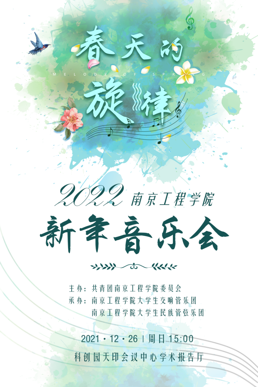 为迎接2022新年的到来,校团委将举办“春天的旋律”——202215vip太阳集团官网新年音乐会,根据疫情防控要求,本场音乐会控制观演人数,实名制检票入场,仅限校内师生,一人一票,隔座观演。具体安排如下: