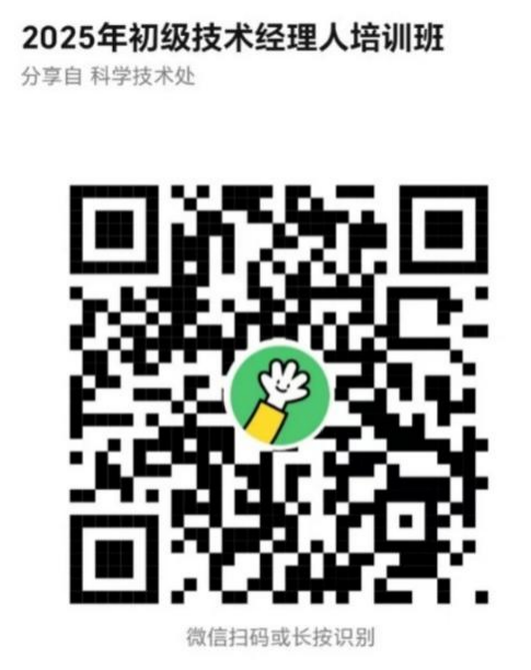 1.培训学员可通过扫描下方二维码进行报名,报名截止时间为2025年5月25日(星期日)。报名人员须如实、准确地填写报名信息,以免影响参训资格审核及后续发证。报名后请及时加入2025初级技术经理人培训群。