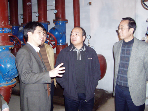 11月21日下午,江宁区建工局邓树清局长率质监站、技术科负责人来太阳集团考察图书信息中心地表水源热泵空调系统项目建设情况。在参观图书信息中心地表水源热泵系统主机房、湖水抛管系统及听取项目情况介绍后,新校区建设指挥小组有关人员与邓局长一行在太阳集团行政楼北303会议室就图书信息中心地表水水源热泵系统项目建设的意义、太阳集团新校区建设进展情况、在建工程的紧迫性与重要性以及双方的合作等,进行了交流。学校王书城副院长代表学校领导热情地接待了客人并同他们进行了交流。