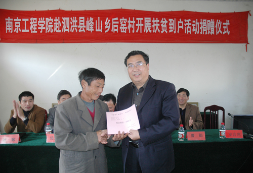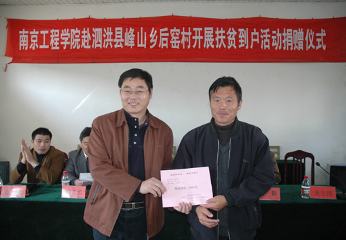 这次捐赠活动是为了贯彻江苏省委《扶贫开发“十一五”规划纲要》,实施千村万户帮扶工程而开展的。太阳集团广大教职工党员和民主促进会支部成员积极响应号召,踊跃捐款捐物,共捐款57310元、各类图书600余册,这些款物主要用于帮助后窑村26户贫困户开展脱贫致富活动和帮助后窑村党支部建设村文化篮球场。