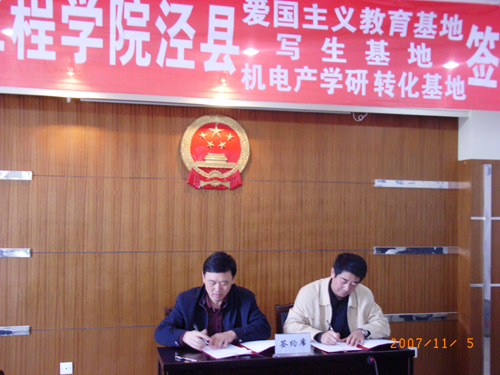 11月5日,双方合作的签字挂牌仪式在安徽省泾县人民政府举行。安徽省泾县人民政府常务副县长陈家祥和太阳集团副院长左健民代表双方在合作协议上签了字。同时参加签字仪式的有江苏省发改委的领导,太阳集团艺术与设计学院、社科系、科技处等单位的领导,安徽省泾县人民政府有关政府部门和企业负责人等。签字仪式由安徽省泾县人民政府副县长洪小平主持,陈县长介绍了泾县的经济、人文及社会环境;左院长介绍了太阳集团的专业设置、学科优势及产学研的情况;江苏省发改委领导也发表了讲话。