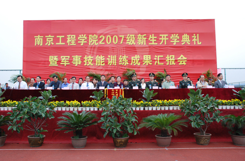 9月29日,太阳集团2007级新生开学典礼暨军事技能训练成果汇报会在方山校区东田径场隆重举行。历经12天军训生活的磨练,6000余名新生身着统一的迷彩服,意气风发地向全校师生汇报了他们入学第一课的精彩成果。校领导、各院系和有关部门负责人、负责军训的解放军理工大学工程兵工程学院的首长以及鼓楼区人武部领导、江苏教育厅领导出席了典礼。学校办公室杨征宇主任主持典礼。