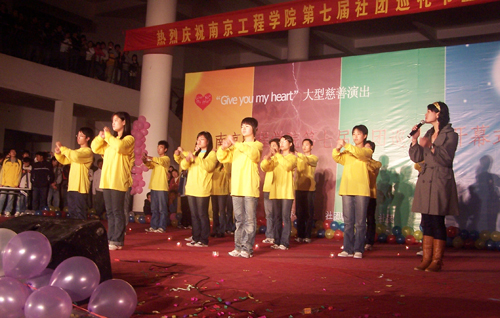 晚会上,同学们用飞扬的激情驱散了初冬夜晚的寒意,展现了丰富多彩的社团文化和南工学子的精神面貌。一开始的劲歌热舞便将观众引入了一个洋溢着青春动感的地带,同学们用音乐诠释了新时期的学子风采。随后是舞蹈协会演出的拉丁舞和民族舞《邵多丽》,展现了古典与现代艺术的融汇、刚性与柔和完美的统一。跆拳道协会、轮滑协会、足球协会、武打协会、吉他社等社团的精彩演出,让台下掌声经久不息,高潮迭起。晚会中插播了爱心社两位同学暑期中骑自行车去青海支教的纪录短片,让在场的每个人都为贫困儿童所感动、为大学生的爱心和决心所感动。