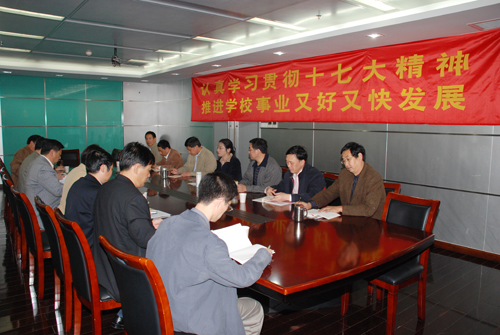 10月24日下午,校党委中心组在至勤楼·行政中心北303会议室集中学习党的十七大精神,党委书记吴建华主持学习并讲话。