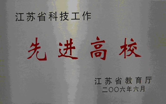 2006年7月6日,江苏省高等学校科技创新大会在南京召开。会上,江苏省教育厅对我院“十五”期间科技创新所取得的成绩给予了充分肯定,授予我院“江苏省科技工作先进高校”荣誉称号。