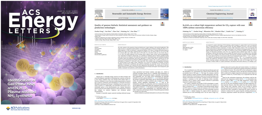 团队面向能源结构转型和双碳战略,发挥团队在工程热物理学科的积累优势,在power-to-X技术路线,基于等离子体催化的绿氨合成,近100%转化效率的CO2高温吸附剂,新型生物质热解气化转化、生物气体燃料性质系统评估,在可再生能源前沿热点领域持续开展基础研究工作,取得了一系列高水平科研成果,在能源领域顶级期刊ACS Energy Letters(IF=23.9)、Renewable and Sustainable Energy Reviews(IF=16.8)、Chemical Engineering Journal(IF=16.7)等发表高水平学术论文20多篇(含封面论文)。