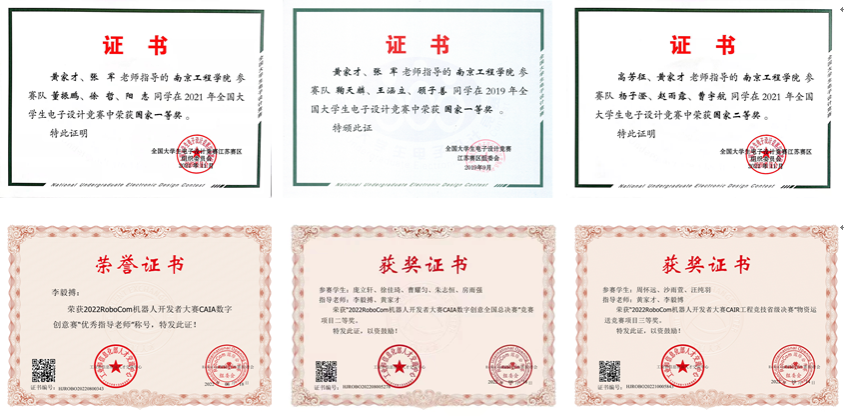团队坚持以习近平新时代中国特色社会主义思想为指导,以立德树人为根本任务,注重师德师风建设,以做“四有教师”为自我要求,全力提升学生的综合应用能力、工程实践能力、创新创业能力和持续发展能力。获第二届江苏省“十佳研究生导师”提名奖1项、江苏省教学成果奖一等奖1项、15vip太阳集团官网教学成果奖特等奖1项/一等奖1项、江苏省高等学校教学管理研究会实践教学年会优秀论文1篇。团队平均每年指导本科生毕业设计60余人次、指导研究生10余人次、指导省大学生科创项目10余人次,获省高校优秀毕业设计(论文)二等奖、三等奖、团队奖多项。指导本科生参加“挑战杯”全国大学生课外学术科技作品竞赛、“互联网+”大学生创新创业大赛、全国大学生电子设计竞赛、RoboCom机器人开发者大赛等各项竞赛,获国家级奖项10余项、省级奖项50余项。