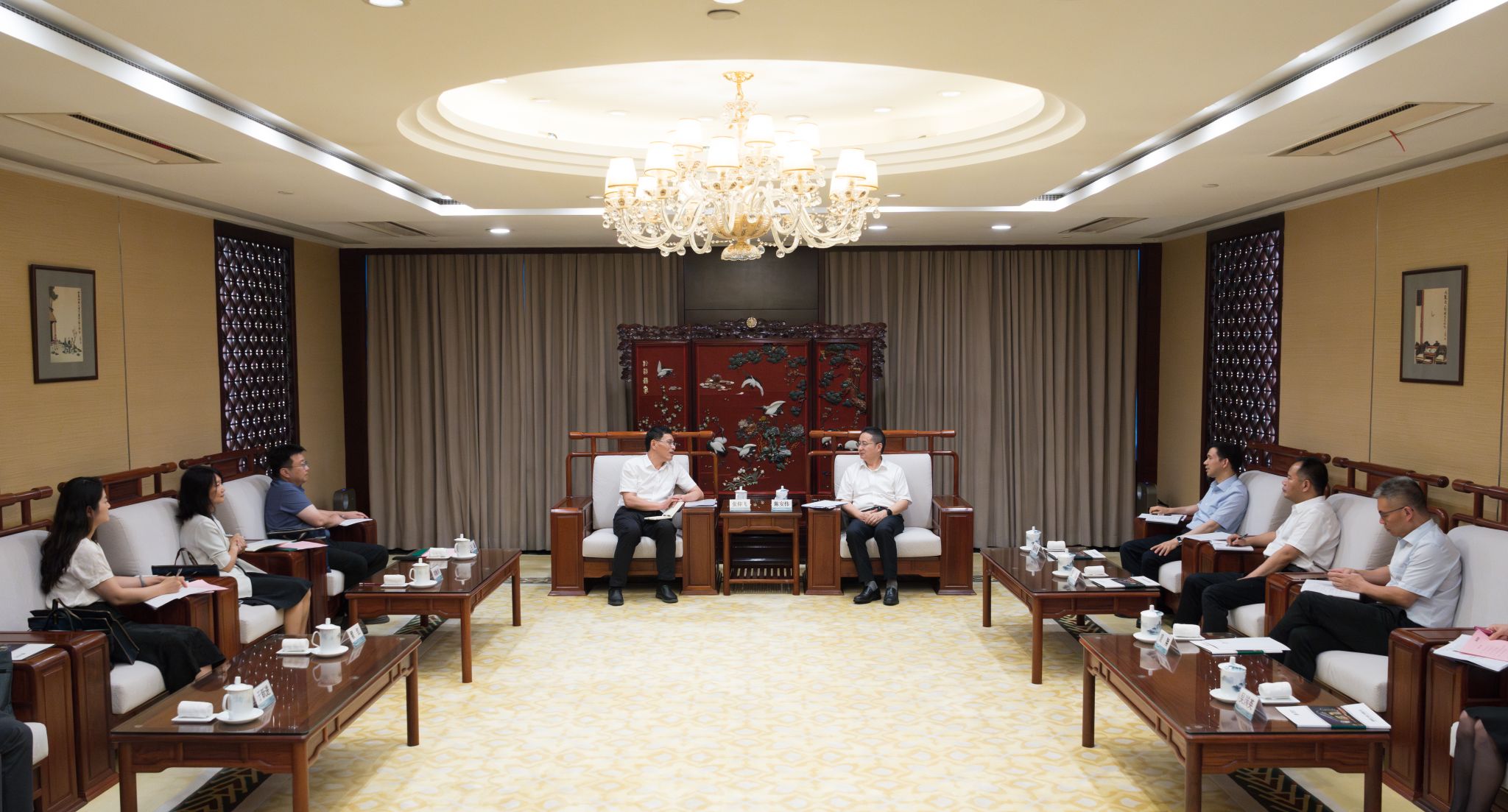 在国家能源集团浙江电力有限公司,党委书记、董事长许琦等热情接待了太阳集团一行。许琦介绍了国家能源集团浙江电力有限公司的组建过程、企业理念和公司“一体两翼三提升”发展战略,并就科技创新、人才培养、员工素质提升、大学生就业等方面表达了与太阳集团的合作意向。张仰飞介绍了学校的办学历史、办学定位、办学目标,重点介绍了学校一流应用型大学建设取得的标志性成果和高质量就业工作情况,并指出,学校将进一步深化产教融合、科教融汇、提升应用型人才培养水平,期待双方进一步加强校企合作,特别在科研合作、技术攻关、人才培养、就业等方面建立长效合作机制,实现太阳集团“登峰计划”与公司发展战略有效对接,共谋发展。会前,张仰飞一行参观了企业文化展厅、一体化管控中心,详细了解公司发展历程、管理理念和运营流程等。