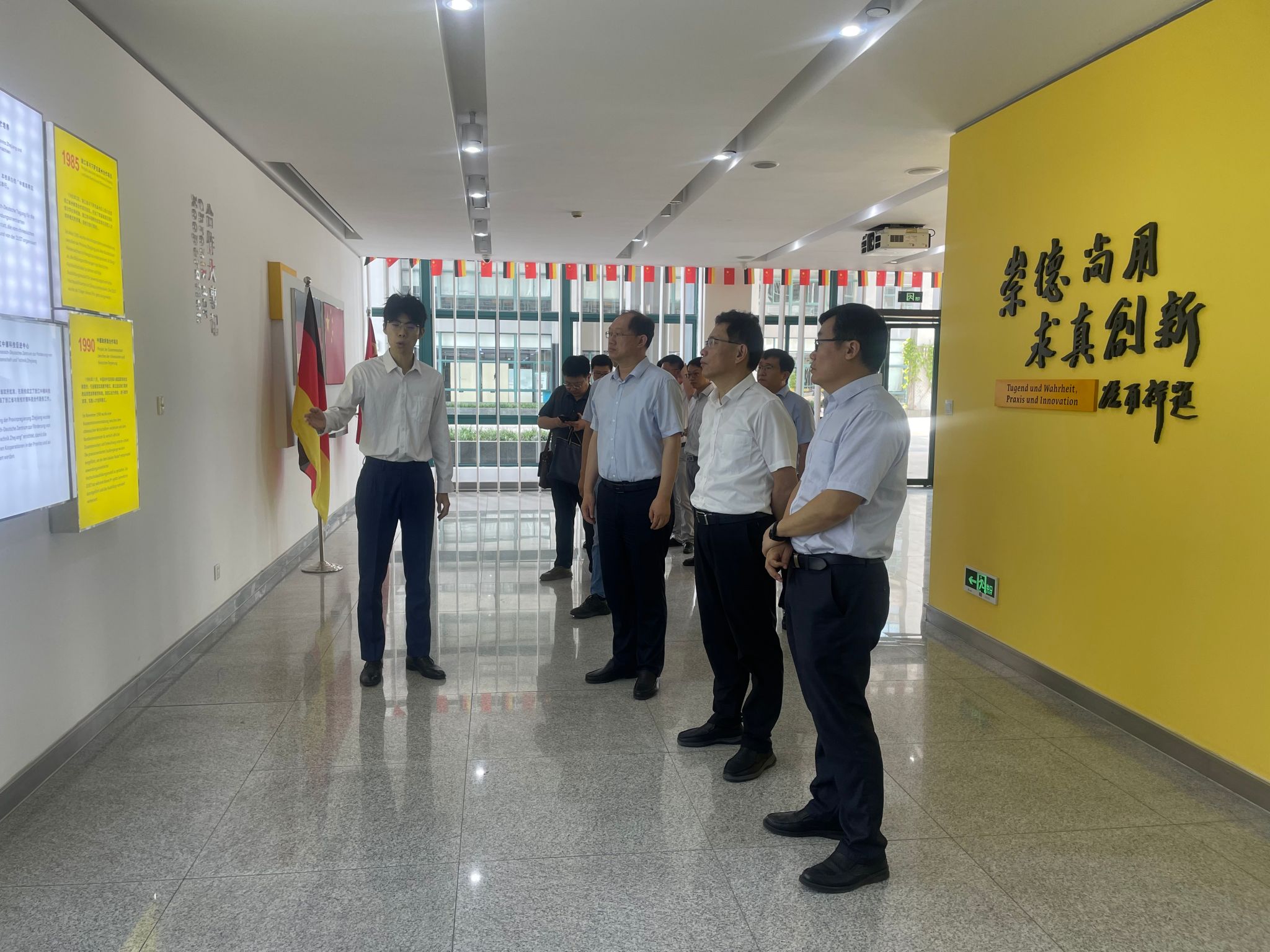 在浙江科技大学,党委副书记、校长陈建孟等热情接待了太阳集团一行。陈建孟介绍了学校国际合作交流概况和中德合作办学历史,并表示学校将继续坚持国际化特色办学,做好中德合作办学品牌,以实际行动推动教育高水平对外开放。张仰飞充分肯定了浙江科技大学在国际化人才培养和服务地方经济社会发展方面取得的显著成绩,介绍了太阳集团的办学历史,并围绕学校应用型人才培养和应用型本科教育的办学理念作了分享,重点阐述学校在坚持产教融合办学道路、彰显办学特色方面的做法。双方就一流应用型大学建设理念与思路、中德合作办学典型经验等方面进行了深入交流。会前,张仰飞、赵文祥一行参观了浙江科技大学中德合作馆。