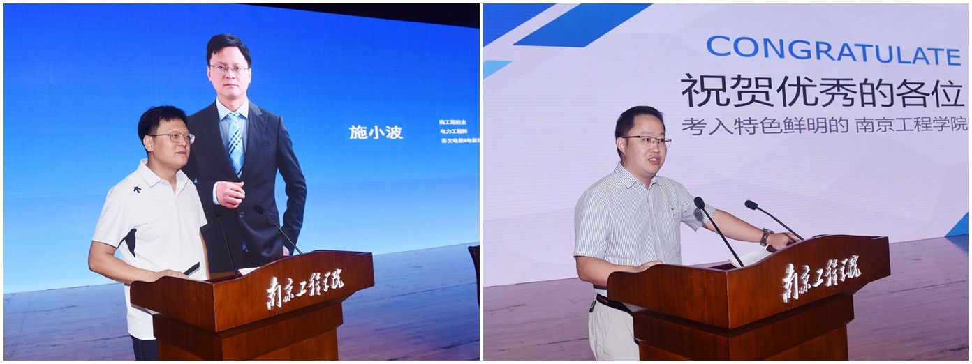电力 95101 班、苏文电能科技股份有限公司董事长兼总经理施小波,机B993班、江苏今创源环保科技有限公司创始人、董事长李超作为校友代表分别发言。他们追忆了在母校求学的美好时光,并结合自身学习和工作经历,勉励学弟学妹们在学习生活中保持善良本分、勇于尝试、直面挑战,把握住大学四年的珍贵时光,书写属于自己的青春华章。