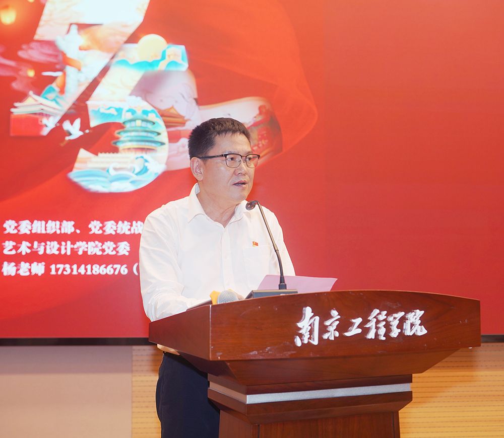 9月25日,由党委组织部、党委统战部、党委宣传部主办,艺术与设计学院承办的“艺心向党 奋斗强国”庆祝中华人民共和国成立75周年艺术展览在至美苑·设计楼影视报告厅开幕。党委书记孙爱武出席活动,并宣布展览开幕。党委副书记濮励杰、江宁区美术家协会秘书长周奇峰为活动致辞。