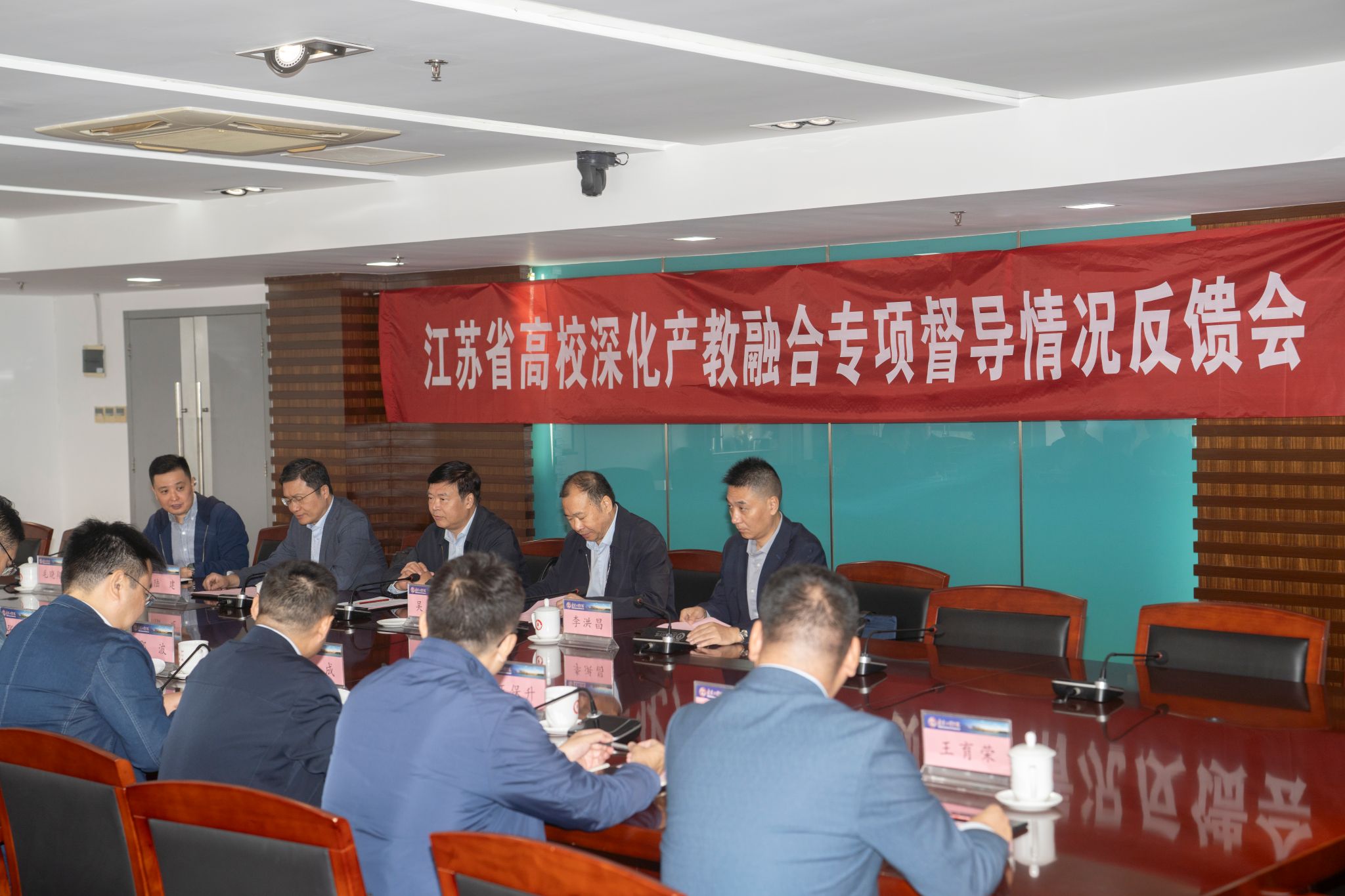 10月9日,由省督学、南通大学原校长施卫东为组长,南京信息工程大学高等教育研究所所长吴立保、东南大学研究生培养办主任陆建、南京信息职业技术学院产教融合发展处处长李洪昌、江苏省教育厅高教处副处长毛晓翔为成员的省政府教育督导委员会深化产教融合实地督导组来太阳集团实地督导产教融合工作。党委书记孙爱武,党委副书记、校长张仰飞,党委常委、副校长朱松青出席见面会和反馈会。