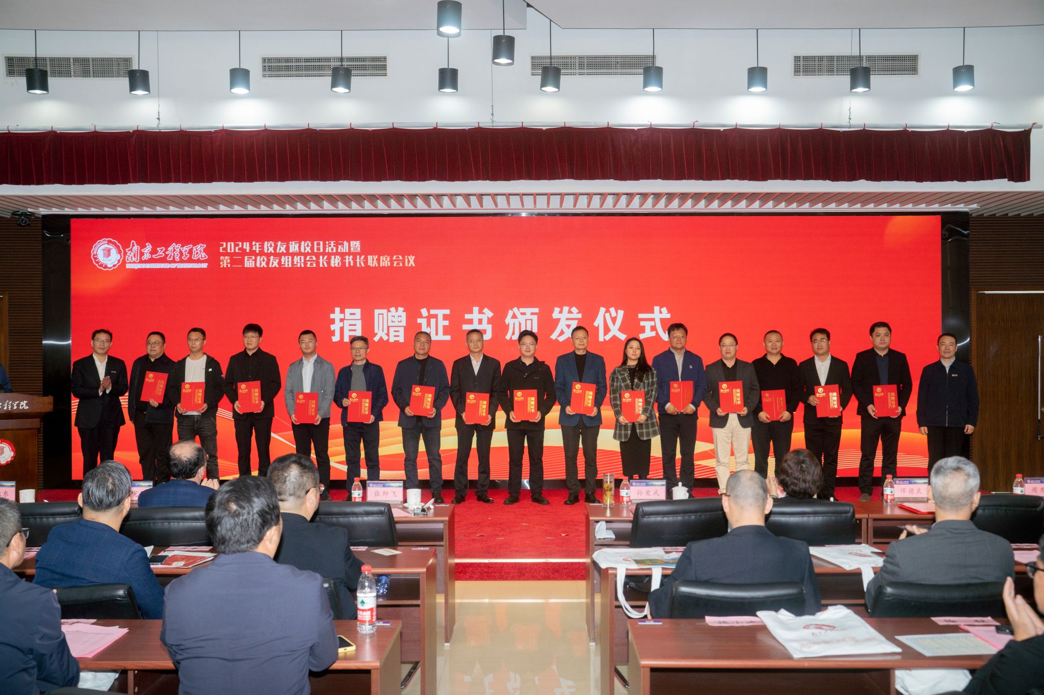 一年来,各校友组织和来自五湖四海的校友为了表达对母校发展的大力支持,纷纷捐款捐物,贡献校友力量。会上发布了年度捐赠情况,孙爱武、张仰飞为捐赠代表颁发捐赠证书。