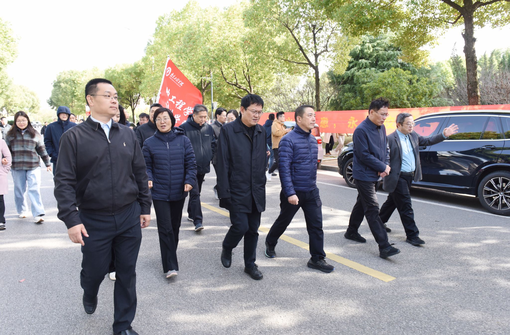 校领导孙爱武、张仰飞、濮励杰、汪群、陆华良、张玉清、包永强出席活动开幕式。党委书记孙爱武为校园健身行活动鸣枪发令。党委副书记濮励杰为大家带来问候和祝愿,他指出,健身行活动是对健康生活方式的倡导,是积极工作态度的体现,更是教职工之间促进交流的平台。希望广大教职工在行走中,尽情感受校园的之美和运动带来的快乐,以更加饱满的热情、更加务实的态度、更加奋发的状态,在学校各项事业高质量发展进程中扛起新使命、谱写新篇章。
