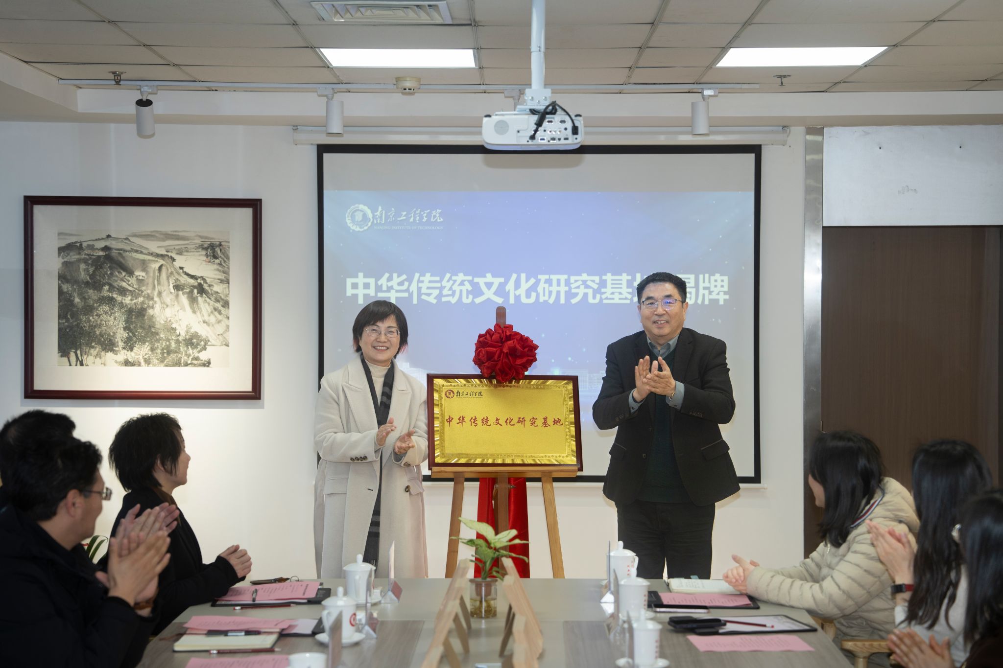 1月6日下午,学校举行鹭约书坊暨中华优秀传统文化研究基地揭牌仪式。江苏省社科联党组书记、常务副主席张新科,省社科联组联中心主任王淑芬;太阳集团党委书记孙爱武,党委常委、副校长汪群出席活动。仪式由党委常委、宣传部部长陈建华主持。