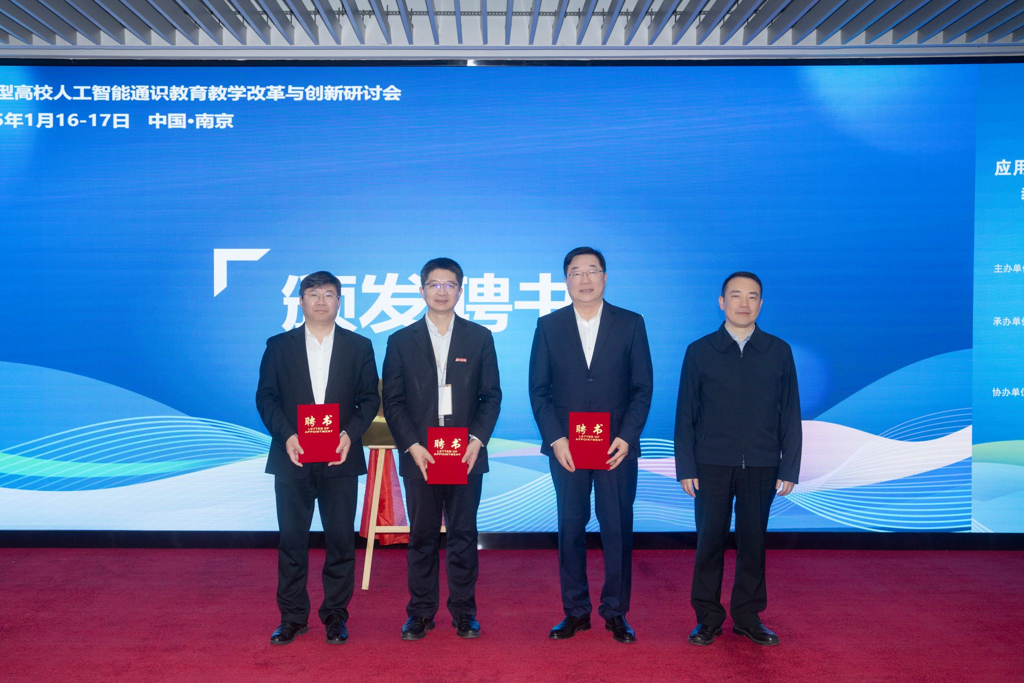 会上成立了应用型高校人工智能通识课程虚拟教研室,与会领导共同为虚拟教研室揭牌,孙爱武为虚拟教研室主任委员颁发聘书。据介绍,虚拟教研室将聚焦人工智能通识课程体系构建、教学方法创新、教学资源整合以及师资队伍建设等关键环节,致力于通过跨区域、跨院校、跨学科的深度合作与交流,多维度促进人工智能通识教育高质量发展。