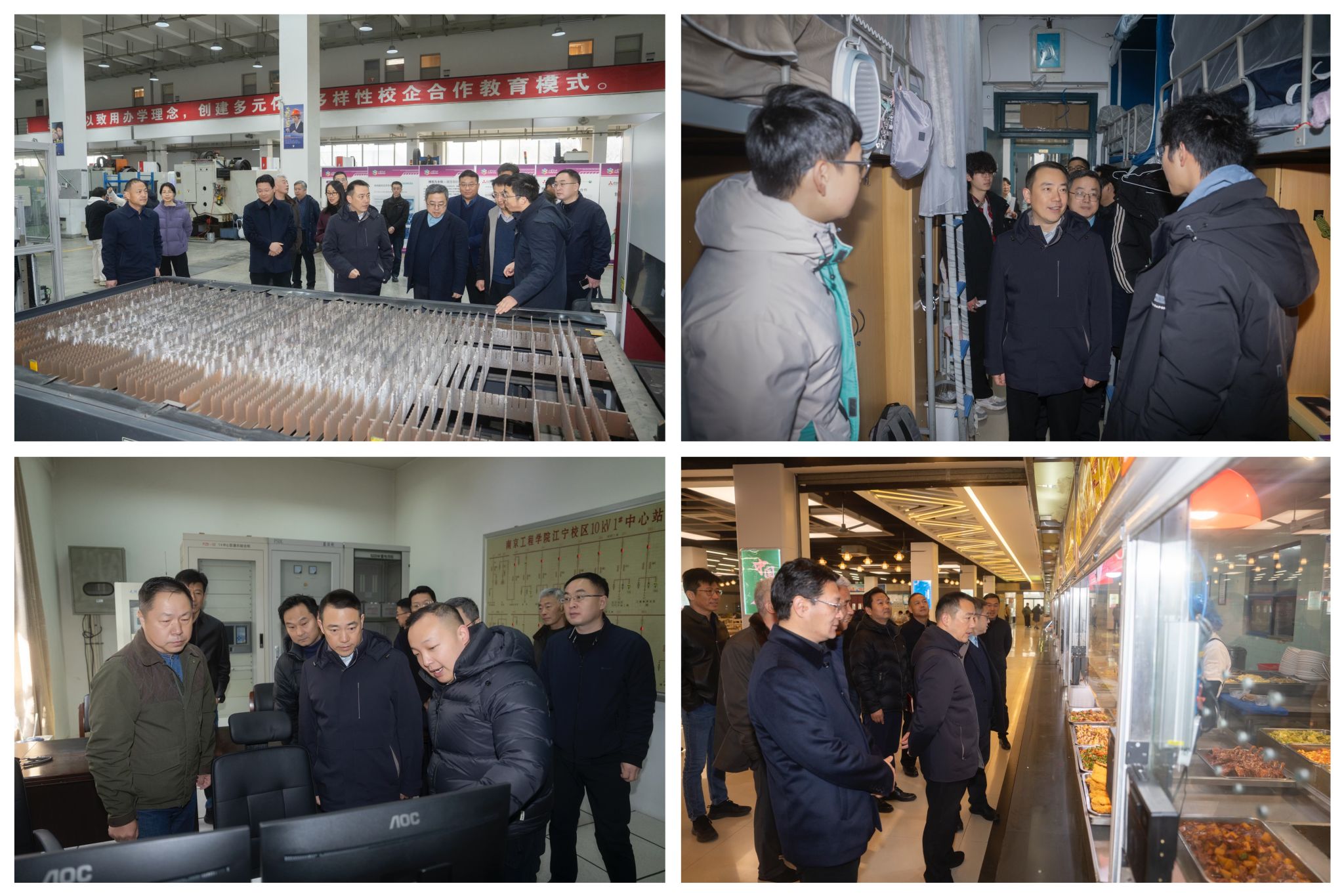 检查组一行实地走访了实验室、宿舍、食堂、教学楼、图书馆等关键区域,重点查看了金工实习车间、工业机器人实习基地、西门子数控实验室、废旧仪器设备拆改装实验室、1号开闭所等点位。通过查阅台账、现场问询等方式,对消防安全、实验室安全、特种设备运行、食品卫生及基础设施维护等情况进行了全面、细致的检查。针对检查中发现的安全隐患,检查组当即要求相关责任人和所属单位迅速落实整改措施,并提出针对性指导建议,督促各单位切实做到以查促改,确保各项安全工作真正落到实处。