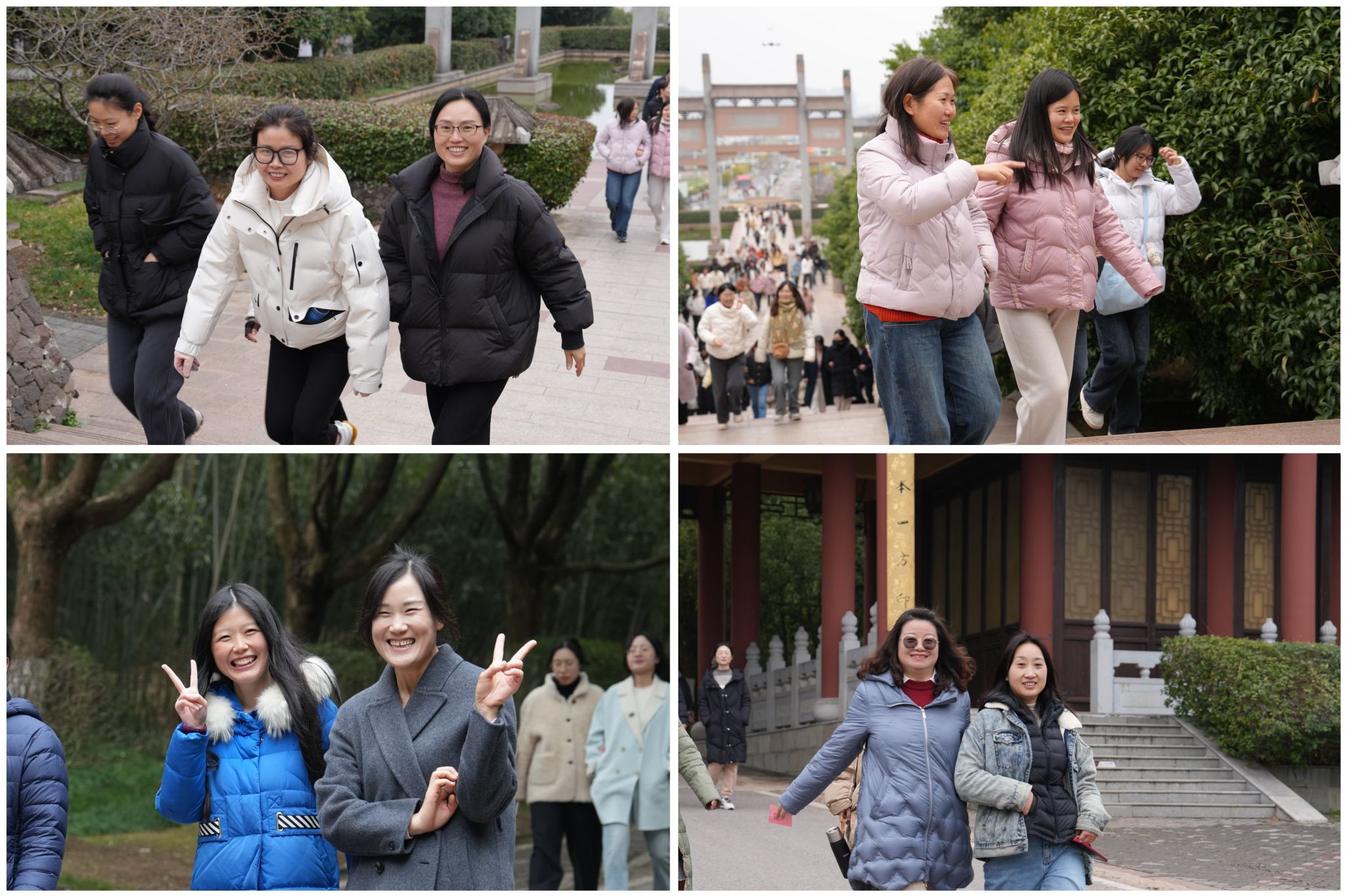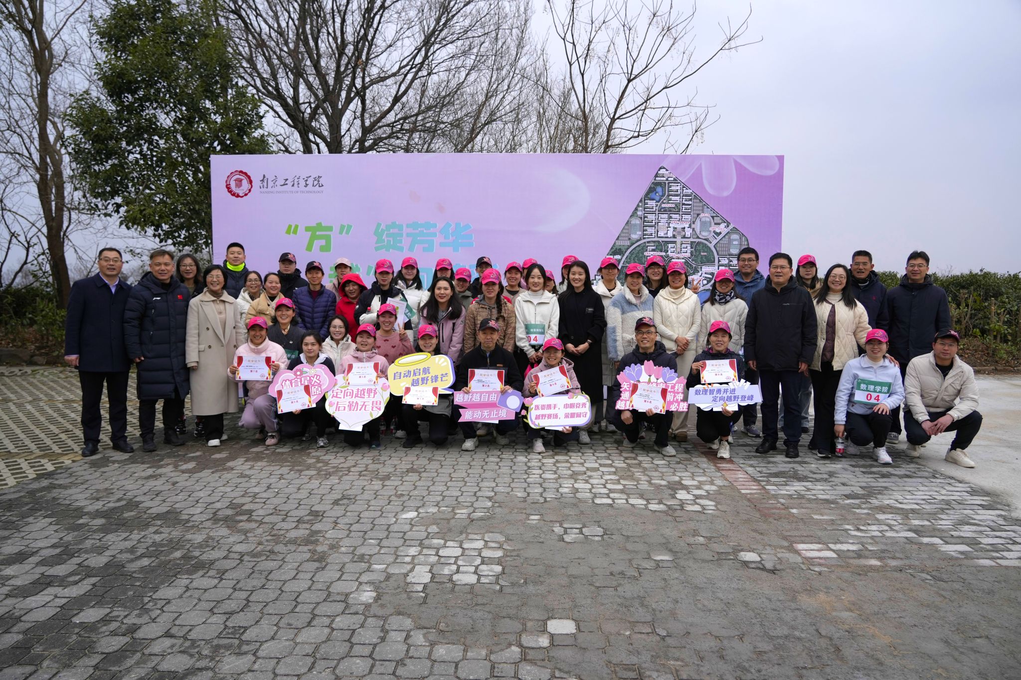 随着发令枪响,女教工们迈着矫健的步伐,沿着蜿蜒的山路向山顶进发。大家三五成群,交流着工作,谈论着生活,或你追我赶,或驻足赏景,或在创意打卡点合影留念,欢声笑语此起彼伏。巾帼风采与初春美景交相辉映,为青山绿茵之间增添了一道道靓丽的风景线。