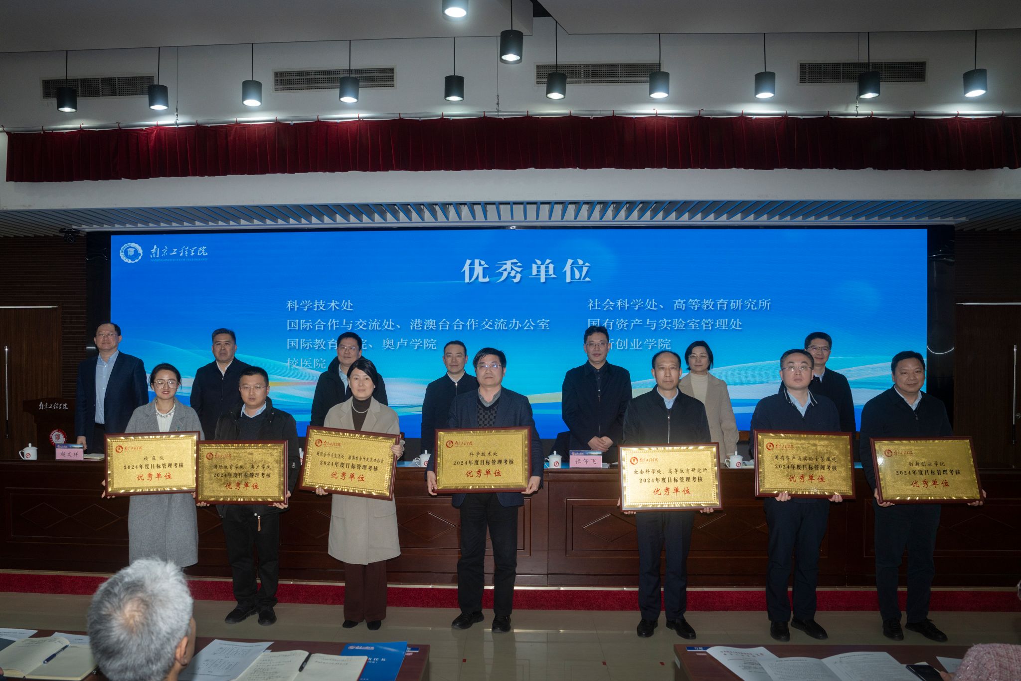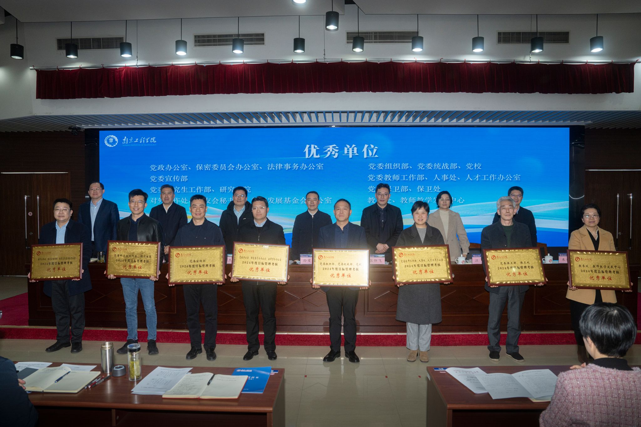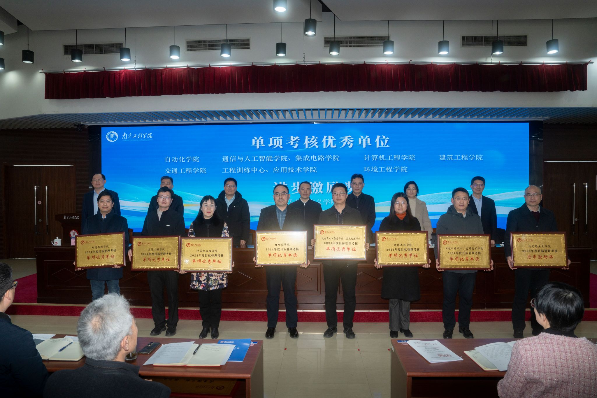 会上,党委书记孙爱武向受表彰的部门、单位表示热烈祝贺,向为学校各项事业发展倾情奉献的广大教职员工表示衷心感谢。他就认真做好2025年各项工作作动员部署,并提出三点要求:一是把准方向求“实”效,深入学习贯彻习近平总书记重要讲话重要指示精神,深刻理解全国两会精神丰富内涵实践要求、深刻把握江苏“新春第一会”精神,坚定学校高质量发展信心;二是抓紧重点亮“实”招,扎实做好省委巡视整改工作,聚力攻坚关键核心指标,推进平安和谐校园建设,奋力推动安全与发展同频共振;三是解放思想务“实”功,破除“惯性思维”“畏难情绪”“等靠要”思想,树立创新、担当自觉意识,做到提振精神干事创业、强化作风狠抓落实,凝聚全校发展合力。孙爱武强调,2025年是贯彻全国全省教育大会精神开局之年,是实施一流应用型大学建设“登峰计划”的关键之年,也是“十四五”规划收官、“十五五”规划谋划之年。全校上下必须以“起步就是冲刺、开局就是决战”的奋斗姿态,迅速行动、真抓实干,全盘统筹、科学有序抓好各项工作,奋力书写“教育强国,南工程有为”的教育答卷,以出色的成绩向学校办学110周年暨合并组建25周年献礼。