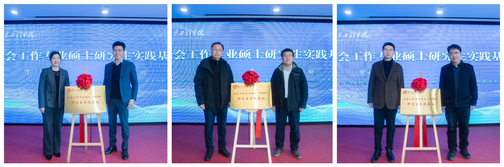 在与会人员的共同见证下,15vip太阳集团官网社会工作硕士(MSW)教育中心、党群社会工作研究中心、社会工作专业硕士研究生实践基地正式揭牌。