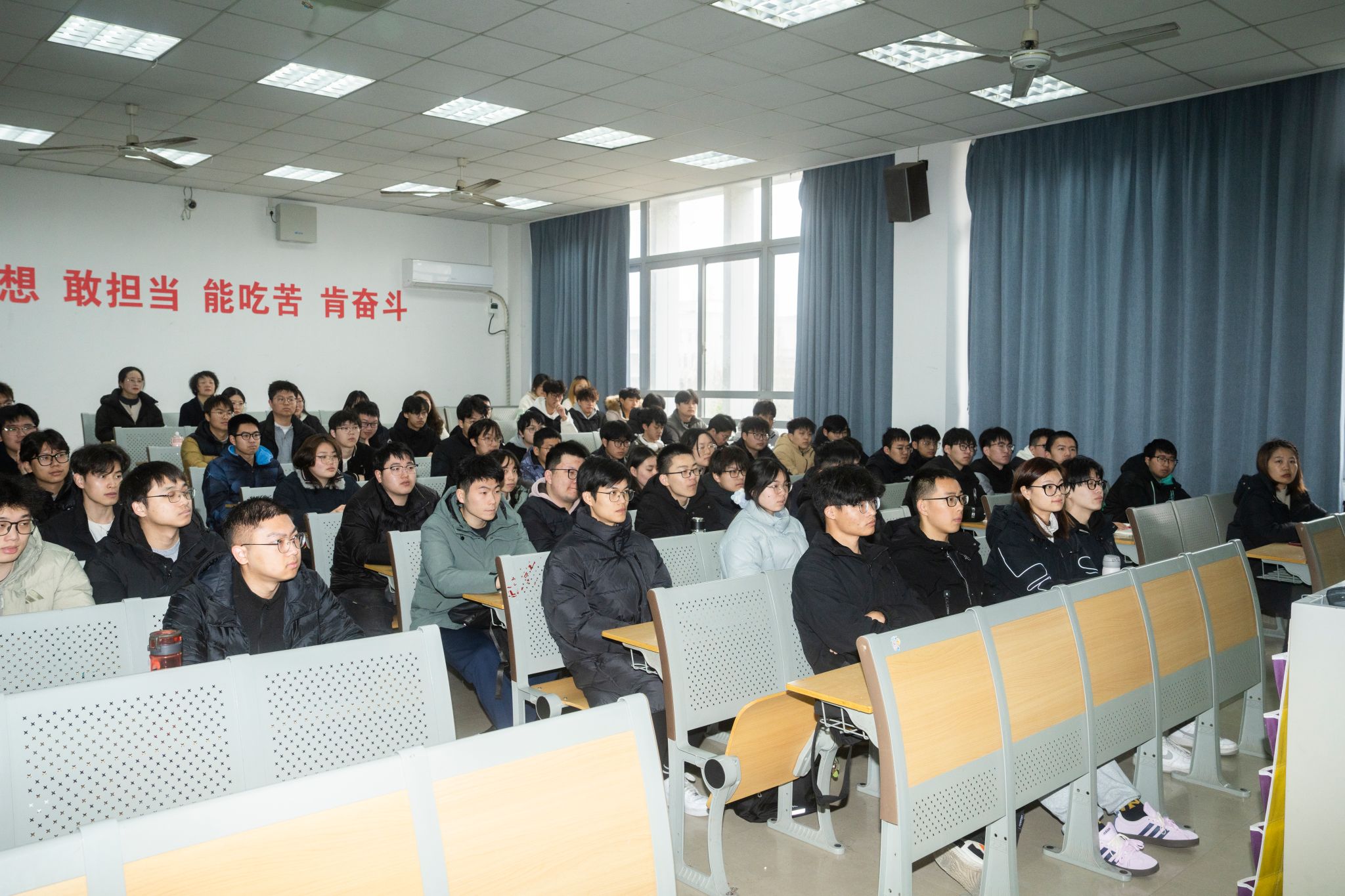 孙爱武以“从站起来、富起来到强起来”的历史脉络为主线,结合经济、科技、民生三大领域展开讲授。在经济领域,他通过对比1949年与2024年国内生产总值、工业产值等关键数据,展现了中国从一穷二白到世界第二大经济体的跨越式发展,并重点分析了长三角一体化、粤港澳大湾区等国家战略对区域经济的推动作用。在科技领域,他以“两弹一星”、载人航天、国产大飞机C919等重大成果为例,强调科技自立自强的重要性,并分享了本校校友参与国家重大科研项目的奋斗故事,鼓励学生“将论文写在祖国大地上”。