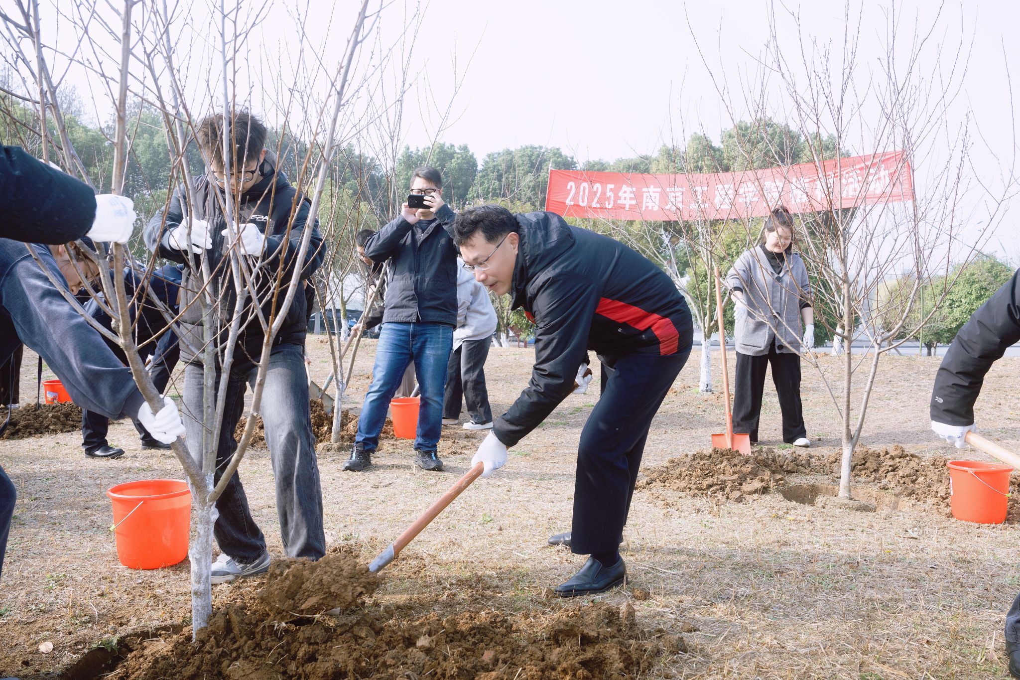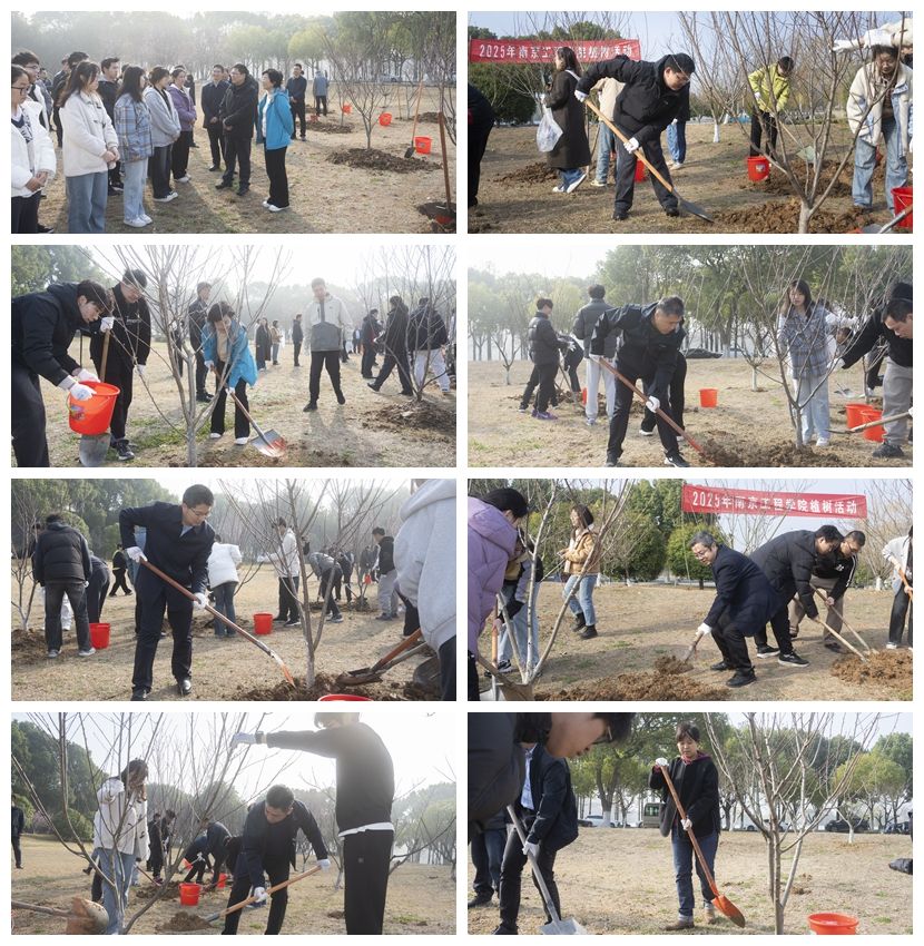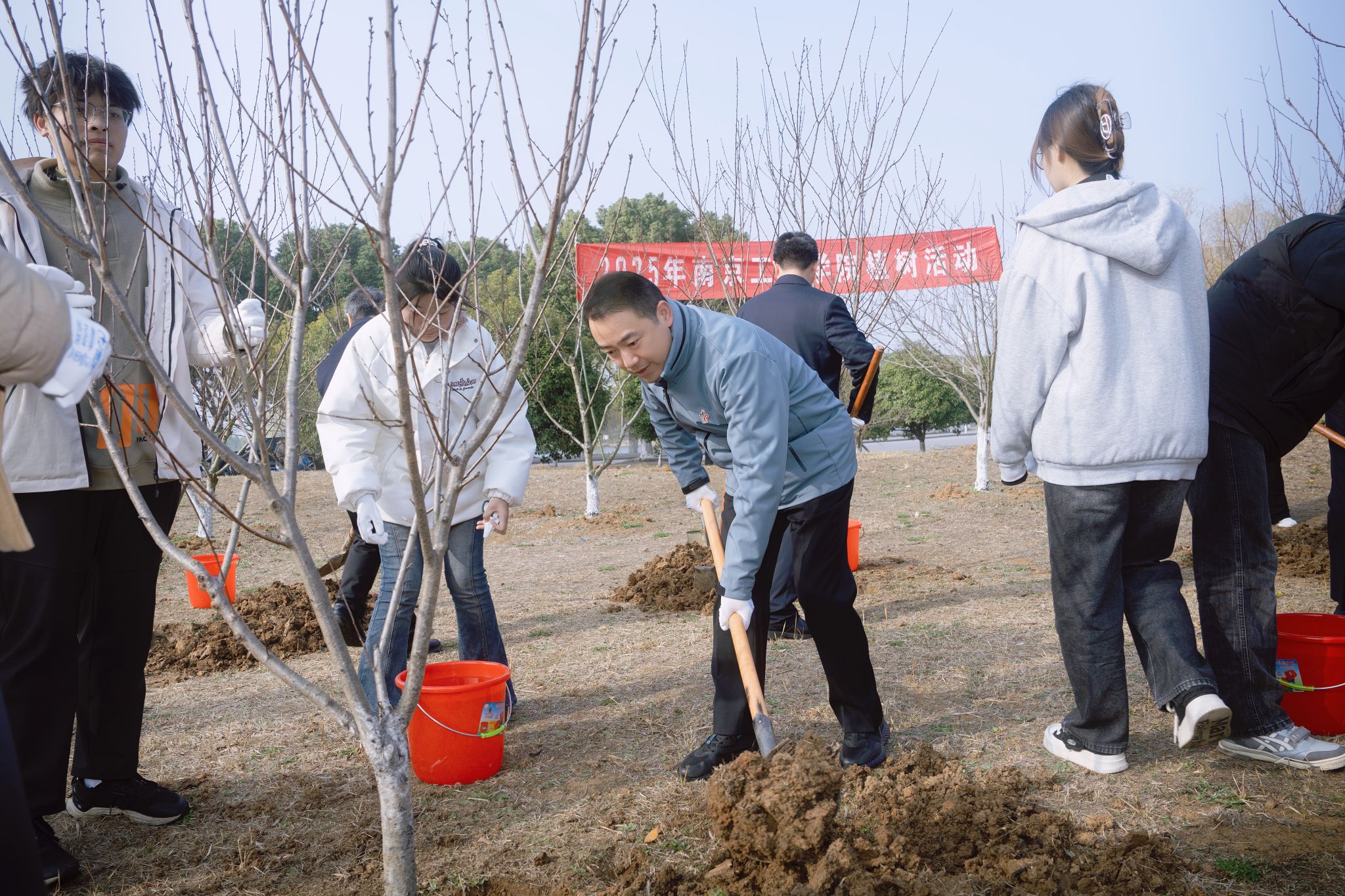 春风送暖万物新,又是添绿好时节。3月11日上午,在第47个植树节即将到来之际,党委书记孙爱武,党委副书记、校长张仰飞等全体在校校领导与近50名师生代表齐聚桃李园,共同开展“植绿铺春‘开’画卷 助力节能‘登’高峰”主题植树活动。这场持续七年的植树品牌活动,不仅将劳动教育与生态文明建设深度融合,更在躬身实践中诠释着南工程“十年树木,百年树人”的深刻内涵。