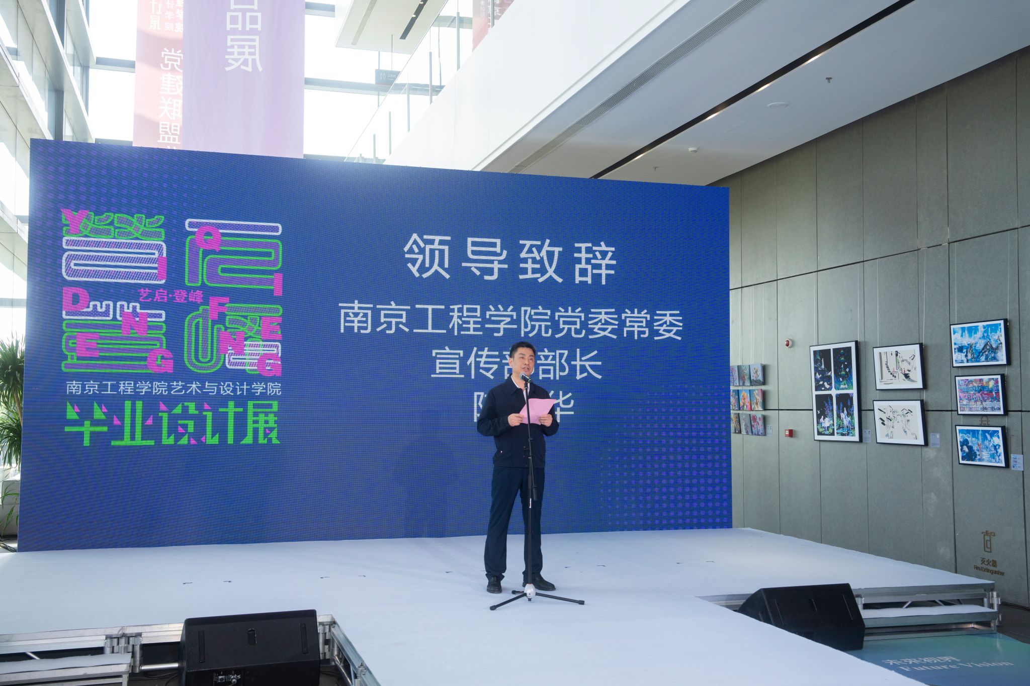 陈建华在致辞中向艺设师生的精心组织和社会各界的大力支持表示衷心感谢,为即将顺利毕业的同学们送上诚挚祝福。他表示,此次毕业设计展是对艺设学子专业能力的认可与褒奖,更是学校艺术教育成果最生动、最真实的写照。希望同学们在未来的艺术征程中无畏挑战、勇攀高峰,用自己的创意和才华,为社会描绘出更多绚丽多彩的画卷,贡献出源源不断的创意力量。