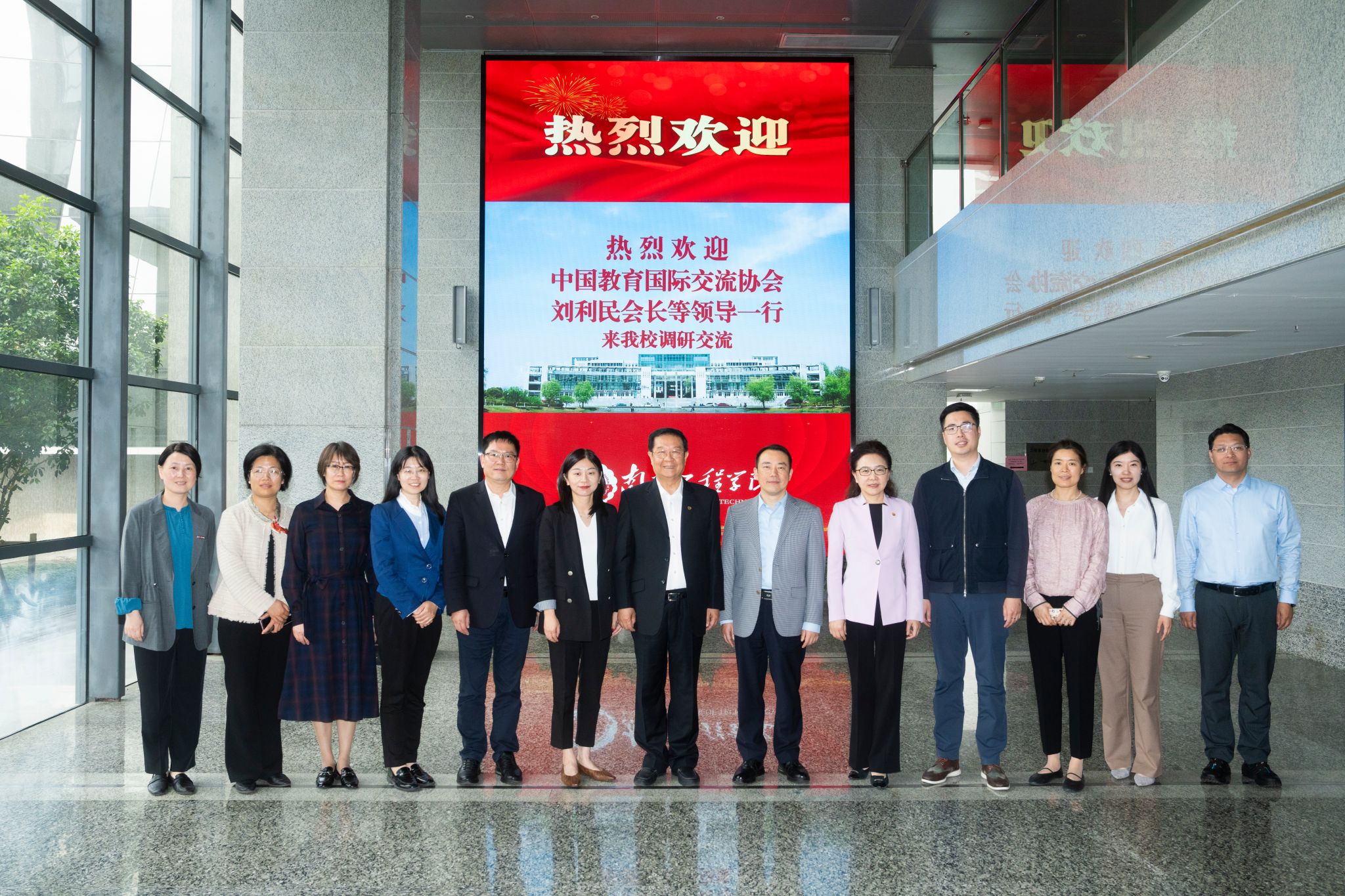 4月27日,中国教育国际交流协会会长刘利民、副秘书长傅博、南京工业职业技术大学国际教育学院院长张海宁等一行来校,围绕学校应用型人才培养、校地融合、产教融合、国际合作与交流等工作开展调研。党委书记孙爱武,党委副书记濮励杰热情接待来宾一行并座谈。