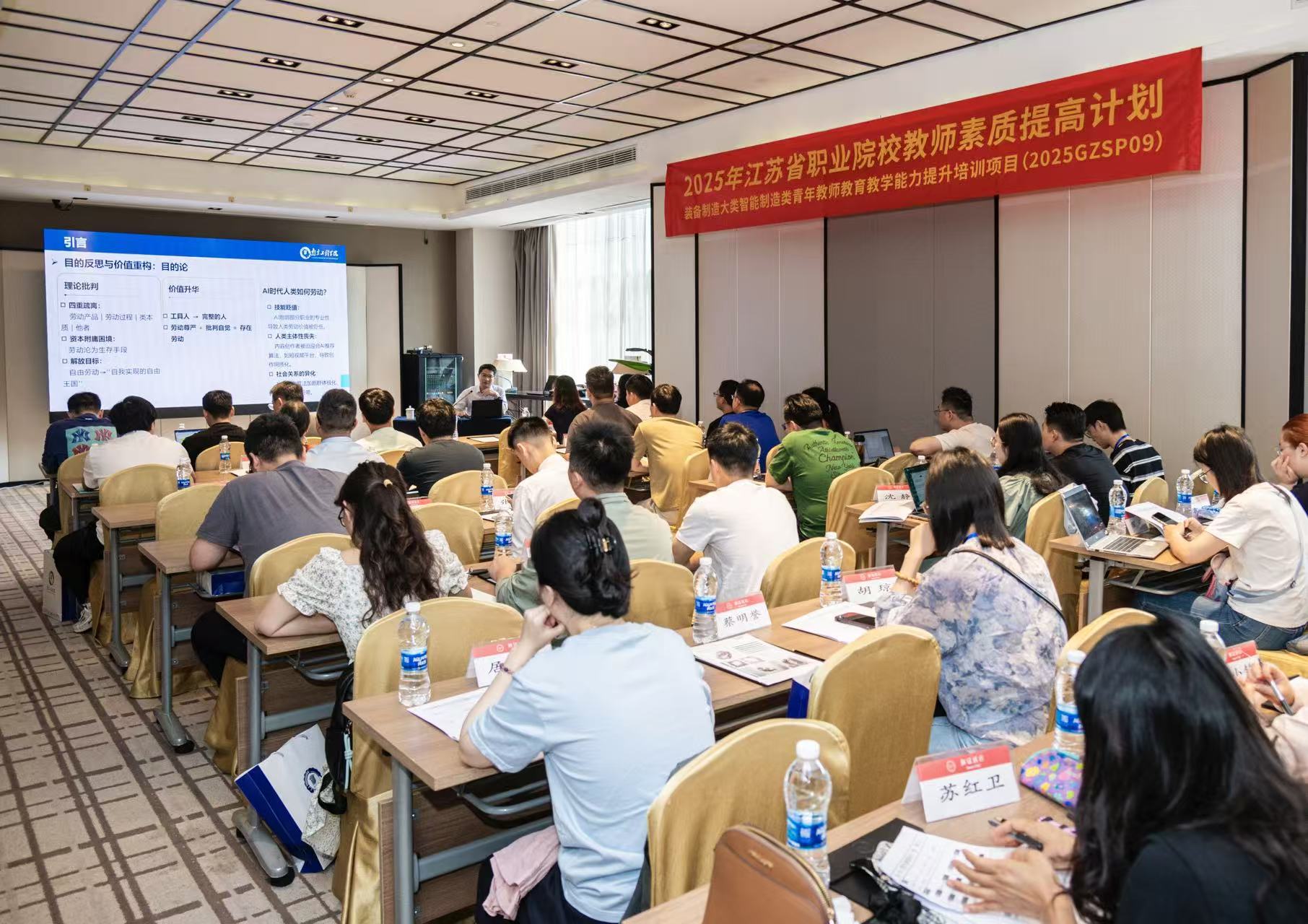 近日,2025江苏省职业院校教师素质提高计划——“装备制造大类智能制造类青年教师教育教学能力提升”培训班在太阳集团举办,全省40名高职院校骨干教师参加培训。党委书记孙爱武,党委常委、副校长朱松青分别为培训班作专题报告。