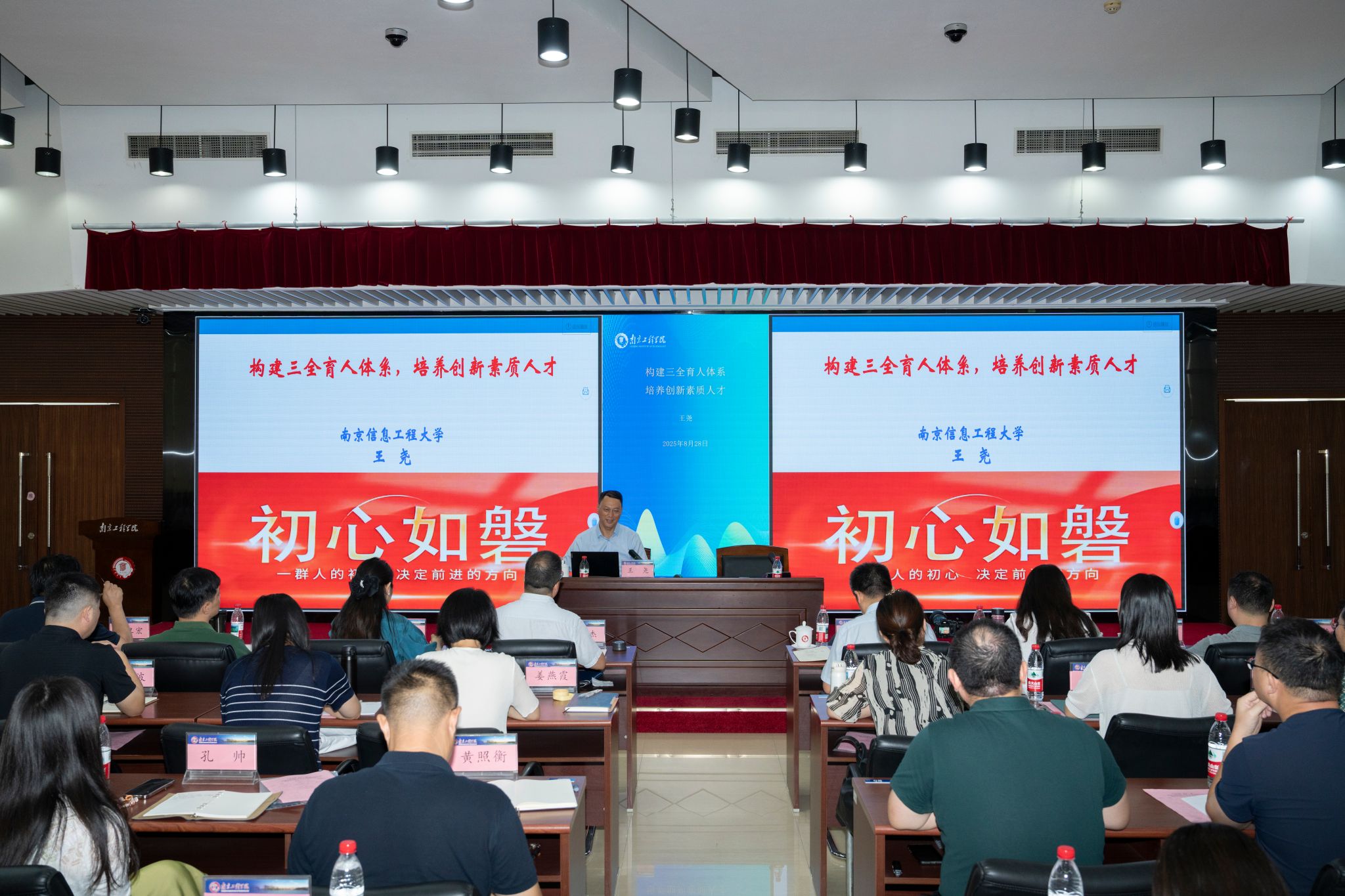 培训特邀南京信息工程大学原党委副书记、副校长、王尧教授作题为《构建三全育人体系,培养创新素质人才》的辅导报告,报告结合教育的时代使命与现实发展状况,系统阐述了提升育人实效的理论路径与实践方法。