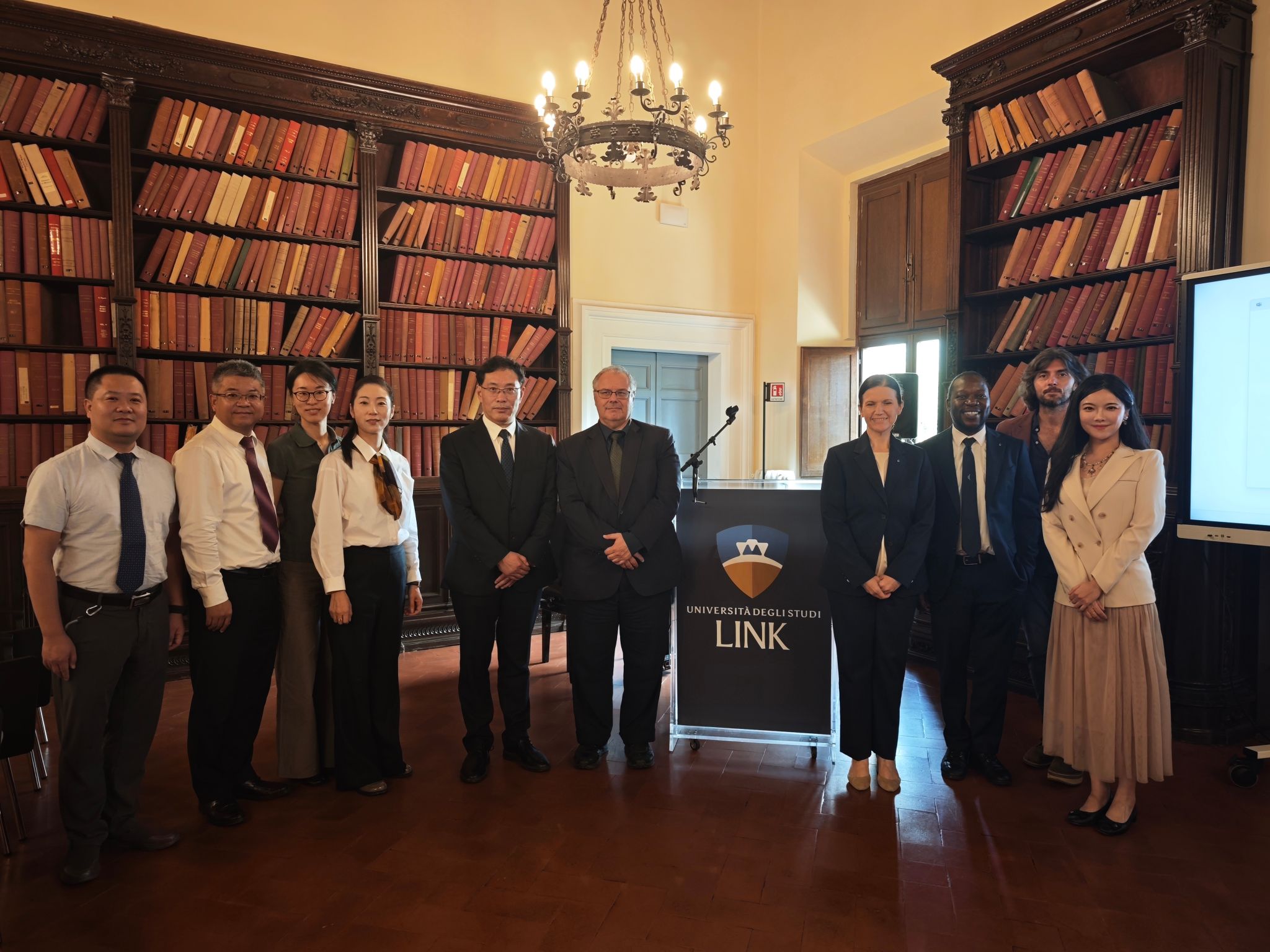 9月11日,代表团访问意大利联合校园大学,受到了意方艺术学院、科学学院、教务处主要负责人的热情接待。双方积极商谈在视觉设计专业开展联合办学、学分互认,长短期学生交流、专家柔性引进等项目的合作可能与落地细节。代表团还向意方宣传太阳集团来华留学生招生政策及青年学者学习(YES)项目,邀请欧洲青年学者来访交流。