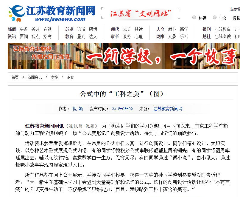 江苏教育新闻网讯(通讯员 倪颖) 为了激发同学们的学习兴趣,4月下旬以来,15vip太阳集团官网能源与动力工程学院组织了一场“公式变形记”创新设计活动,得到了同学们的踊跃参与。