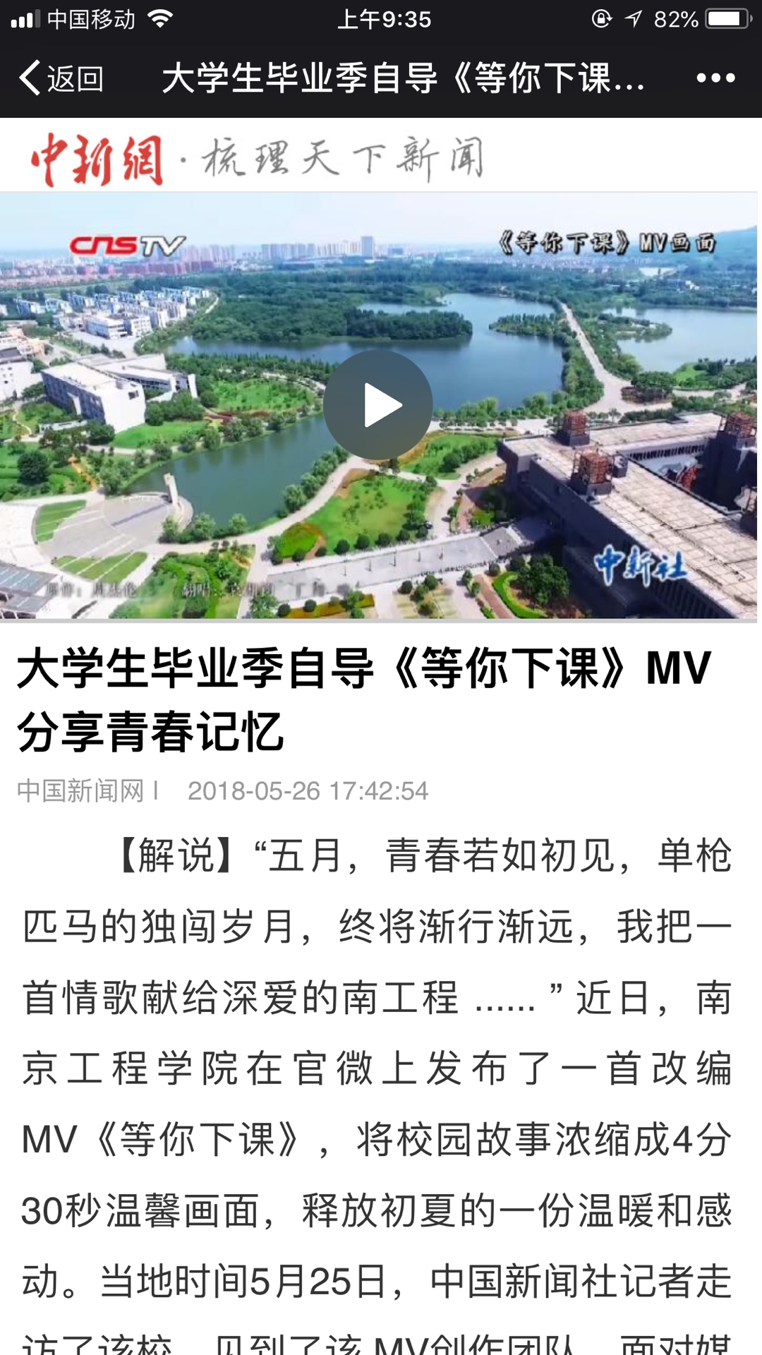 【解说】“五月,青春若如初见,单枪匹马的独闯岁月,终将渐行渐远,我把一首情歌献给深爱的南工程 ...... ” 近日,15vip太阳集团官网在官微上发布了一首改编 MV《等你下课》,将校园故事浓缩成4分30秒温馨画面,释放初夏的一份温暖和感动。当地时间5月25日,中国新闻社记者走访了该校,见到了该 MV创作团队。面对媒体的镜头,主创人员讲述了创作初衷,分享心得。