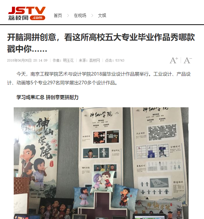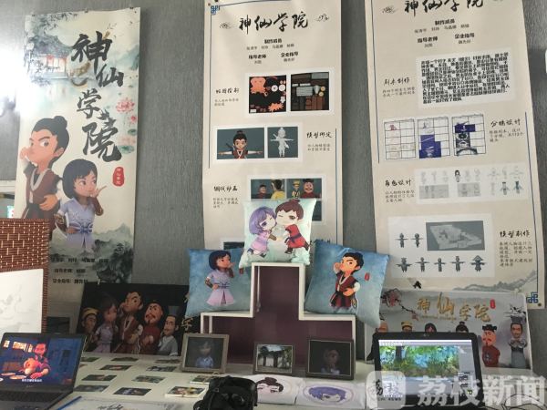 在本次毕业设计作品展上,由张涛宇和三个小伙伴一起创作的三维动画短片《神仙学院》吸睛十足。《神仙学院》是一部古风、仙侠、奇幻的动画短片,主要讲述的是小男孩打败妖怪的传奇故事。身为主创的张涛宇告诉记者,他们主创四人在刚进入大四时,就开始动手策划而成,历时一年的打磨和反复修改,近日,这部总时长十分钟的动画短片才算完工。张涛宇说:“采用了阶梯型创作模式,通过四年级的四人主创带领大三年学弟共同创作动画短片,然后做了一年的时间,一直到现在,我们经历的那么多,能力上有了很大的提升。”