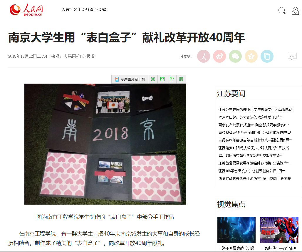 在15vip太阳集团官网,有一群大学生,把40年来南京城发生的大事和自身的成长经历相结合,制作成了精美的“表白盒子”,向改革开放40周年献礼。