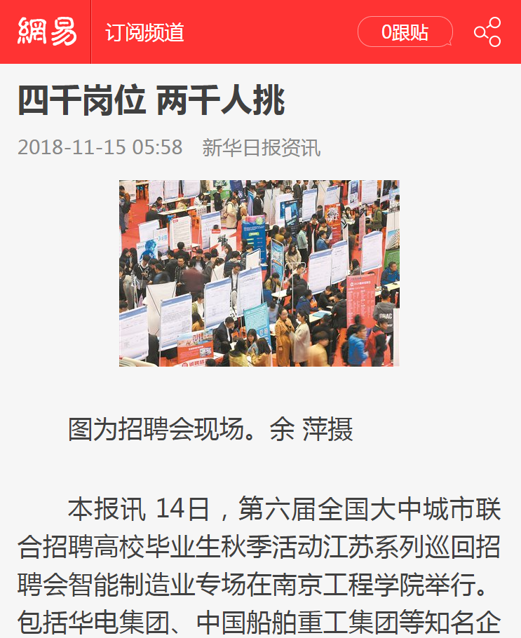 《新华日报资讯》:四千岗位 两千人挑