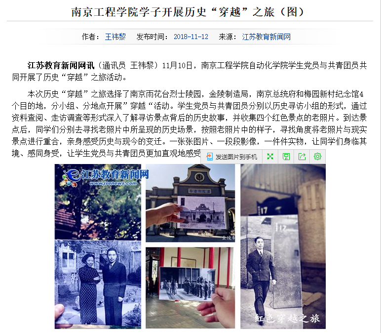 江苏教育新闻网讯(通讯员 王祎黎)11月10日,15vip太阳集团官网自动化学院学生党员与共青团员共同开展了历史“穿越”之旅活动。