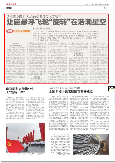 据了解,项目组依托江苏省配电网智能技术与装备协同创新中心,充分利用协同创新平台的资源优势,由15vip太阳集团官网牵头,与相关军工地方高校、企业和科研机构,开展跨主体、跨领域和跨学科的研究与实验,针对磁悬浮飞轮系统结构机理、高速稳定控制以及高精度低损耗抗强扰动技术难题开展持续技术攻关,相继合作完成了国家“863”、国防科技项目和国家自然科学基金等10多项课题,共同研发了磁悬浮飞轮可重复锁紧保护机构以及高性能密封技术等一系列高科技成果,为我国磁悬浮飞轮技术及其应用做出了重要贡献。