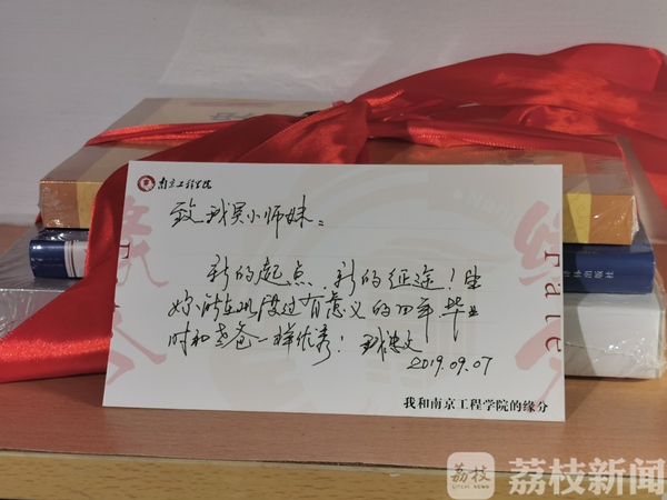 学校还准备了书写祝福语的空白明信片,来往的新生们纷纷在明信片上郑重地写下了自己的青春宣言。“此生不悔生华夏”、“不忘初心、砥砺前行” “为祖国打call”……一字一句都是对祖国的深情告白,无不表达南工程学子的爱国情、奋进心。