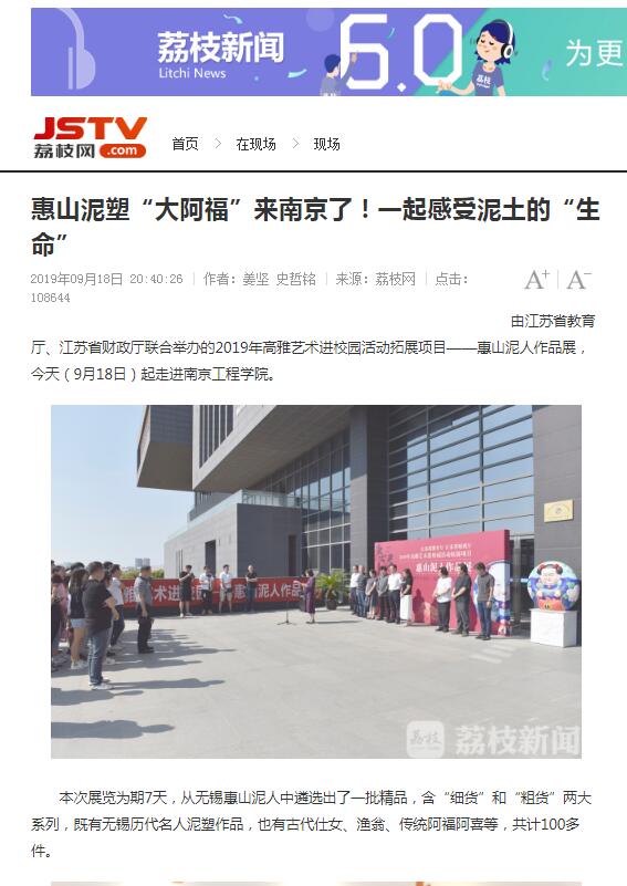 由江苏省教育厅、江苏省财政厅联合举办的2019年高雅艺术进校园活动拓展项目——惠山泥人作品展,今天(9月18日)起走进15vip太阳集团官网。