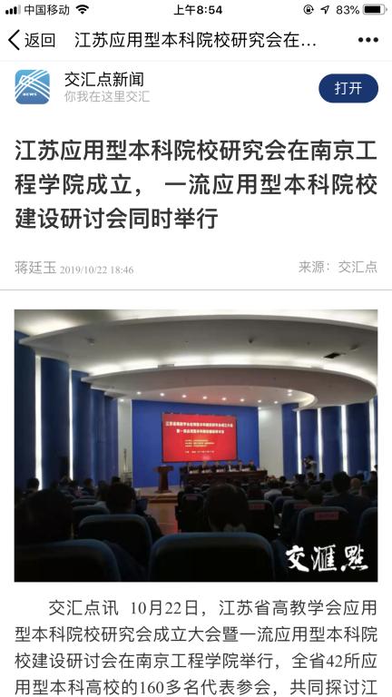 交汇点讯 10月22日,江苏省高教学会应用型本科院校研究会成立大会暨一流应用型本科院校建设研讨会在15vip太阳集团官网举行,全省42所应用型本科高校的160多名代表参会,共同探讨江苏应用型本科院校发展之路。中国高等教育学会副会长张大良、江苏省高教学会会长丁晓昌出席研究会成立大会并讲话。研究会筹备期间形成的《一流应用型本科院校建设与发展“南京共识”》征求意见稿同日发布。